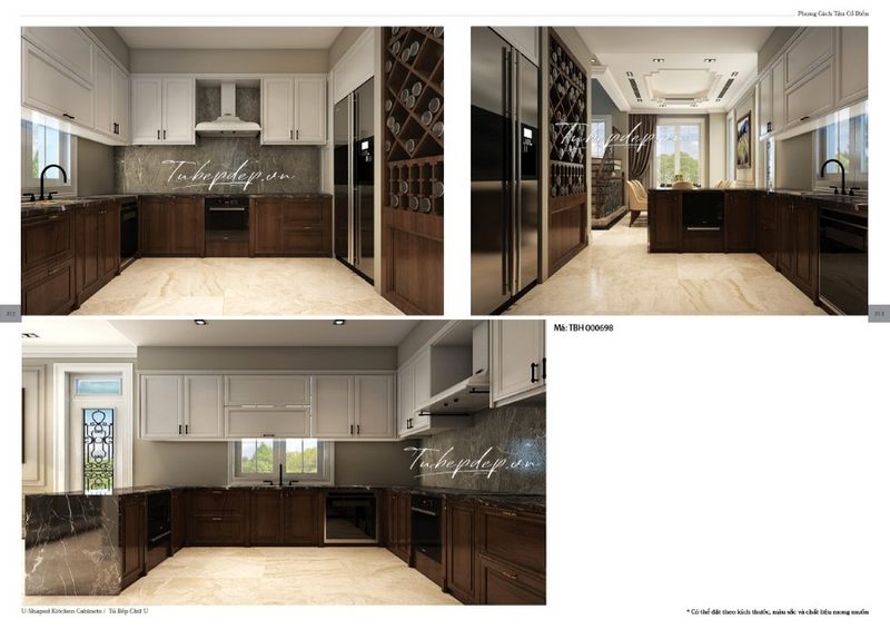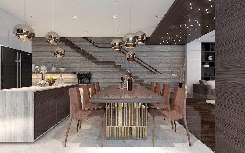 Mẫu thiết kế phòng bếp liền phòng ăn biệt thự cao cấp mang phong cách quý tộc.