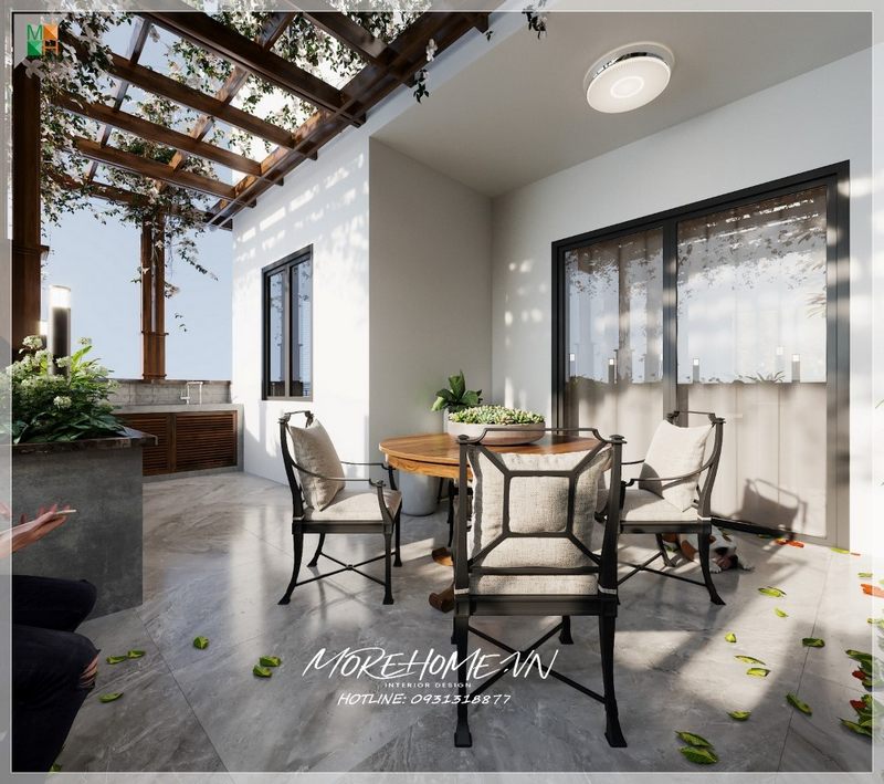 Sân thượng khoảng không gian trên cùng của ngôi nhà trở thành không gian lí tưởng để gia chủ tận hưởng không gian mát rượi, thêm những cây xanh đem đến cảm giác bình yên