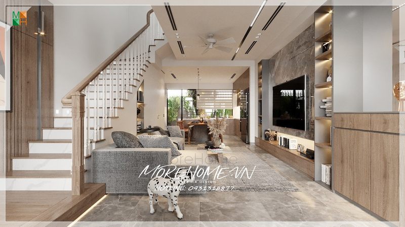 Thiết kế nhà phố, biệt thự hành lang nơi di chuyển đi lại gắn kết các không gian trong ngôi nhà với nhau mang thẩm mỹ cao.