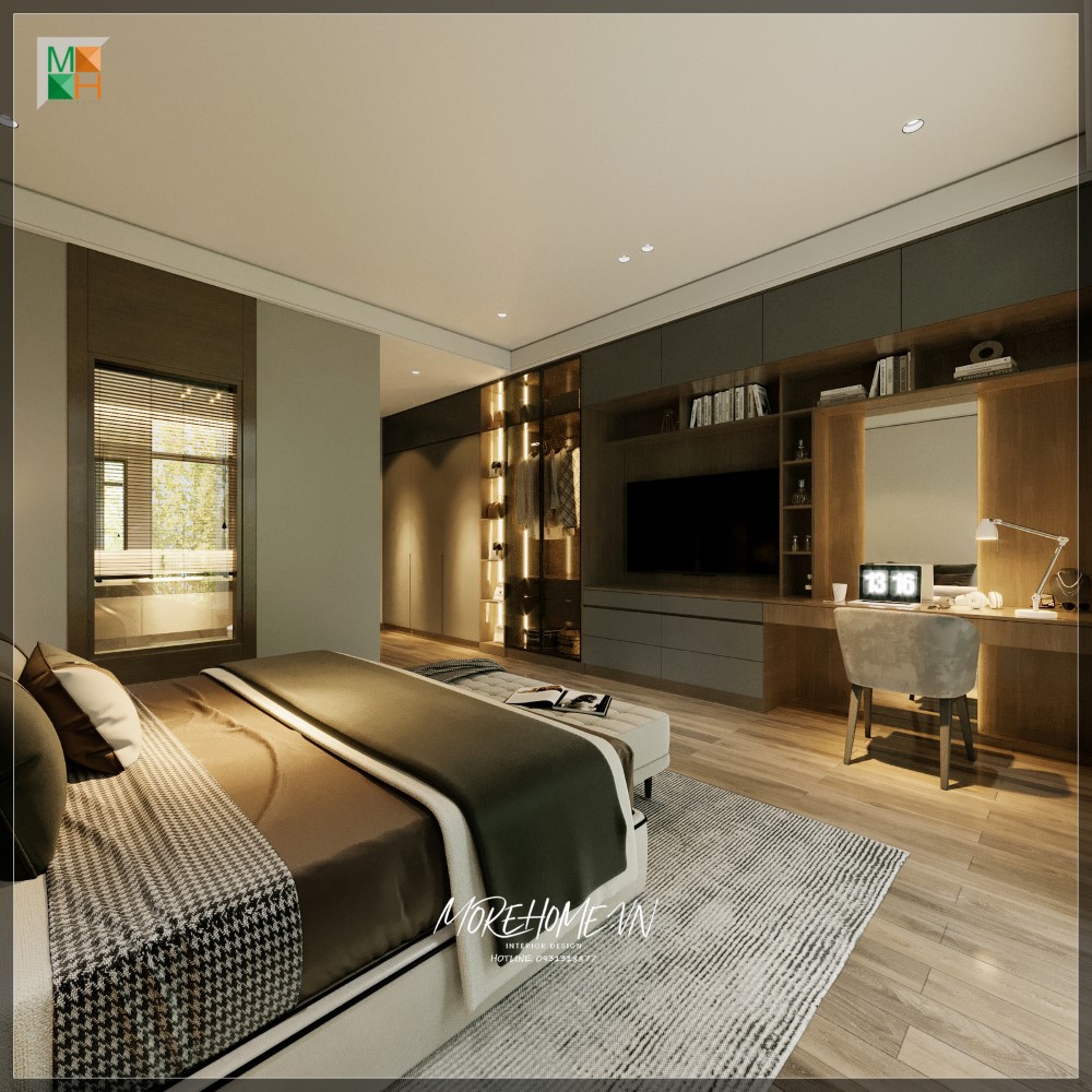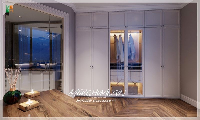Thiết kế tủ quần áo hiện đại tại phòng ngủ biệt thự cao cấp