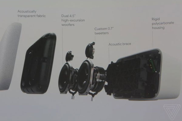 Google đã chính thức ra mắt loa Home Max - phiên bản lớn hơn của loa thông minh Home, cạnh tranh với Apple HomePod và Sonos. Home Max bao gồm hai loa woofers 4,5 inch cùng với 2 loa tweets 0,7 inch được bọc trong vỏ nhựa cứng và phủ bên ngoài bằng lớp vải có chức năng tản nhiệt đồng thời cho phép âm thanh đi ra tốt hơn. Nó cũng bao gồm các micro có thể nghe được giọng người dùng trong khi chơi nhạc.